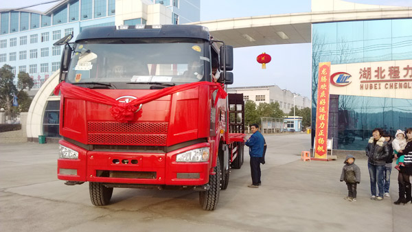 該車于年前客戶定購,于今天昨日交付給客戶,因?yàn)樵诳蛻粼谖夜巨k理分期付款業(yè)務(wù),在我市上戶,年檢也在我市,客戶對我們說:“其實(shí)上我市的牌照還省心些,上客戶當(dāng)?shù)氐呐普漳陮忂€要季審,年審,費(fèi)用也需要3000多,還不如一次性交由我公司來年審,省時(shí)省心!”。今天客戶在我市辦理上牌手續(xù)及辦理營運(yùn)證。于晚上客戶提車走。客戶對這輛解放J6前四后八平板運(yùn)輸車非常滿意。