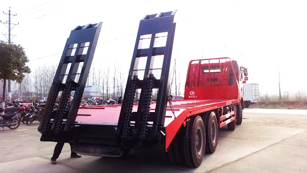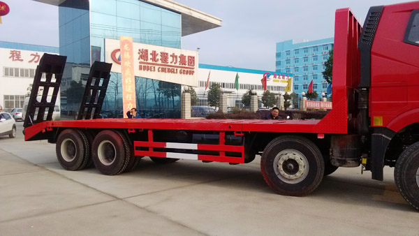 解放J6前四后八平板運(yùn)輸車采用解放錫柴330EGR馬力發(fā)動(dòng)機(jī)改裝,帶制動(dòng)。