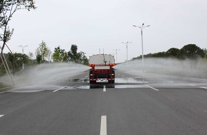 城管局原有3輛舊灑水車,經過一段時間洗路作業后,發現原裝的出水口噴出的水流距離雖遠,但壓力不大,易在空中形成水霧,只能清潔浮灰,無法將路面徹底洗凈,3輛車洗12萬平方米的面積,來回得洗5趟。達不到路段“迎賓路”的標準。現在湖北程力綠化灑水車只要4趟就能解決問題,可節約17噸水和一小時時間”。