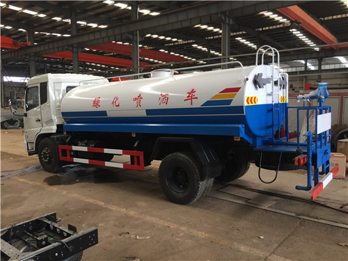 東風天錦12噸灑水車采用東風天錦中日合資DFL1160BX豪華底盤,排半帶臥可前翻駕駛室,康明斯180馬力國五發動機,東風6檔變速箱,軸距4500mm,4.5噸前橋,9噸后橋,9.00R20原廠鋼絲胎,原廠abs,原廠空調,帶方向助力,離合助力器,氣剎制動。