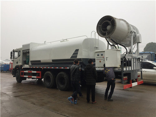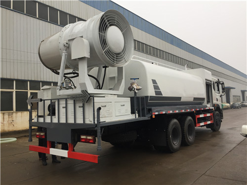 多功能抑塵車又稱為:霧炮車、噴藥車。霧炮車噴射的水霧顆粒達到微米級,能有效分解空氣中的污染顆粒物、塵埃等,在霧霾天氣下用于降塵除霧,可以有效的緩解霧霾,其節水的特性同樣也可以用作灑水車使用。霧炮車還可以降塵、灑水,把樹上的灰塵洗掉。霧炮車噴灑出的水霧與懸浮在空氣中的PM2.5和PM10粉塵顆粒吸附、聚合、沉降,達到消除污染物和減霾的目的。盡管霧炮口徑巨大,但其噴灑耗水量僅為傳統灑水車的兩到三成,覆蓋面積和除塵效率卻高出20倍。既提高效率,也避免路面積水影響交通。