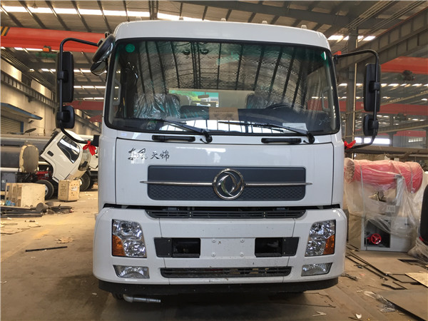 東風天錦12噸灑水車底盤配置:軸距4500,國五康機ISB180 50,東風6檔,9.00R20輪胎,空調,斷氣剎、方向助力、排氣制動、電動窗、ABS、下防護。