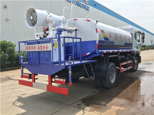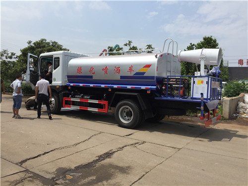 改裝配置:罐體用4MM碳鋼板制作,罐內(nèi)隔板具有防波作用,以減低汽車行駛時罐體液體的沖擊。整車帶一個專用灑水泵(垂直最大吸程6米),灑水寬度14米,射程28米。多功能灑水車配備2個前沖(噴)(能將路面泥巴、塵土、垃圾沖干凈);2個后灑(能均勻地將水灑在路面,一次灑水寬度14米)、2個側(cè)噴(花灑)(能均勻地將路旁綠化帶澆灌)、帶1個后工作平臺,平臺上安裝1個綠化灑水高炮(灑水炮可全方位旋轉(zhuǎn),可連續(xù)調(diào)成直沖狀、大雨、小雨、毛毛雨,霧狀可調(diào)節(jié)沖洗高大樹木),引水時間<5min,流量90m3/h。帶1個消防接頭,帶1個自流閥,1個過濾裝置、人性化爬梯及側(cè)防護欄,安裝灑水音樂喇叭。