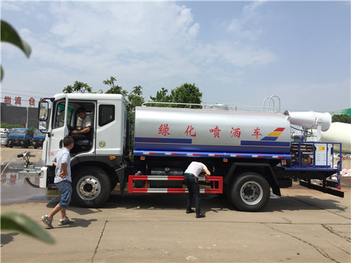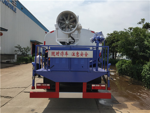 一臺“霧炮”灑水車可噴灑100多米。“霧炮”又叫環保除塵風送式噴霧機,安裝在車的后半部分。“霧炮”的原理是在液泵噴水后,利用風機將水噴灑出去,能噴灑120米遠、90米高。向天空噴灑水霧,達到抑制揚塵、綠化除塵等效果。