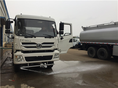 灑水車采用東風(fēng)底盤,白色排半可前翻駕駛室,康明斯210馬力國(guó)五發(fā)動(dòng)機(jī),陜齒小八檔變速箱,4300+1300m雙橋軸距,10噸后橋,10.00R20原廠鋼絲胎,原廠abs,帶方向助力,離合助力器,氣剎制動(dòng)。