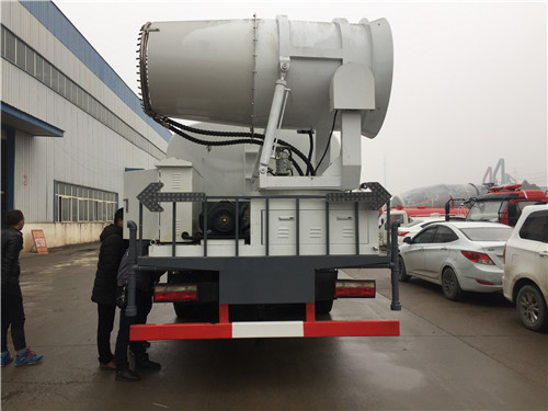 5.配套柴油發電機組供電安裝在運輸車輛上,操作靈活,使用安全可靠,遙控和人工控制操作,可隨意控制調節水平旋轉噴霧角度。