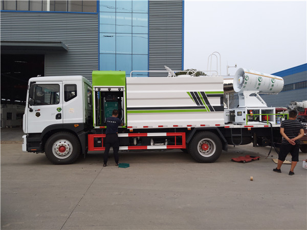 我廠生產的環衛抑塵車根據罐體容積不同,采用4-6mm厚武鋼Q235碳鋼板制作,罐體內置防浪板,避免車輛急剎時液體前涌造成的安全隱患,罐體頂部開有人孔。人孔既可以作為工作人員進行罐內檢修的進出口,也可以作為加水孔用于向罐內加注水;隨車配備大功率專用灑水泵(標配隨州億豐灑水泵,選配杭州威龍灑水泵),比同類灑水泵壓力大、吸程遠、使用壽命長,克服其他灑水泵易被雜物纏住、壓力小、吸水慢的缺點。整車帶前沖(噴)、后灑、側噴、罐體后部帶工作臺,平臺上安裝綠化高壓灑水炮。灑水炮可全方位旋轉,可連續調成直沖狀、開花狀、大雨、小雨、毛毛雨、半霧狀水流,以適合不同狀況下的需求。
