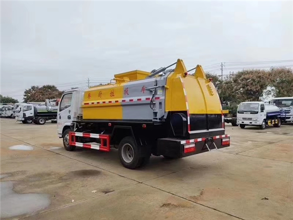 國六8方餐廚垃圾車選用標準載貨汽車底盤改裝而成。改裝部分主要包括:廂體總成、自動提升裝料裝置、液壓系統(tǒng)、操作系統(tǒng)等。