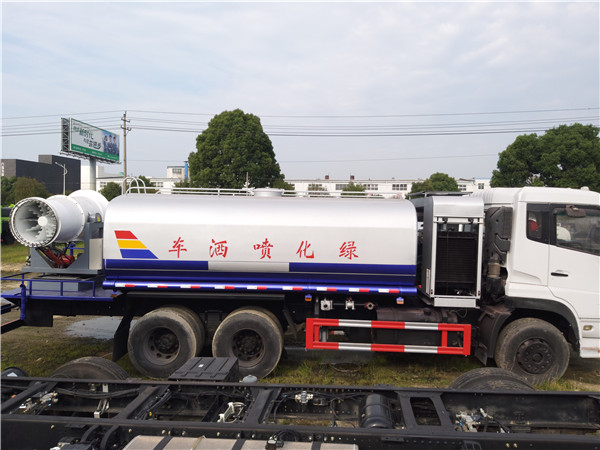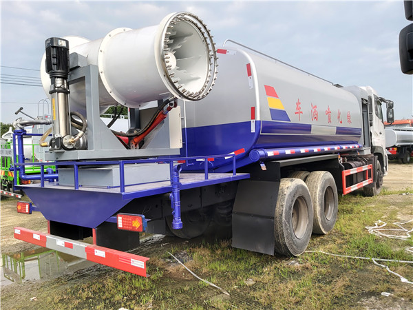 自提一臺東風12噸多功能抑塵車,是多功能抑塵車中銷量最好的一款,罐體可裝水12噸,霧炮射程70米,兼具灑水車全部功能,仿天錦駕駛室,高配置,低價格,百公里綜合油耗26升左右,該車免征環保齊全,無需繳納購置稅。