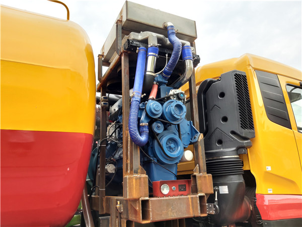 高壓清洗吸污車水氣分離器位于容罐前頂部,后通容罐。它的內部設有輸氣管其管兩側開矩形孔,供空氣出入容罐。在抽吸作業時,容罐內空氣從矩形孔出來,體積突然擴大,流速降低,重度較大的水分子數目減少,可減少其對潤滑油和機件的危害。