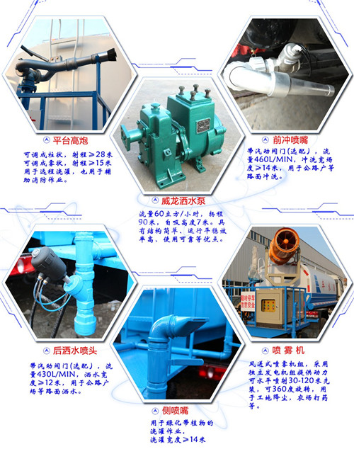 動力,將罐體內部的液體通過管網噴灑出去。工作范圍:自吸高度:≤7m,灑水寬度:≥14m,最