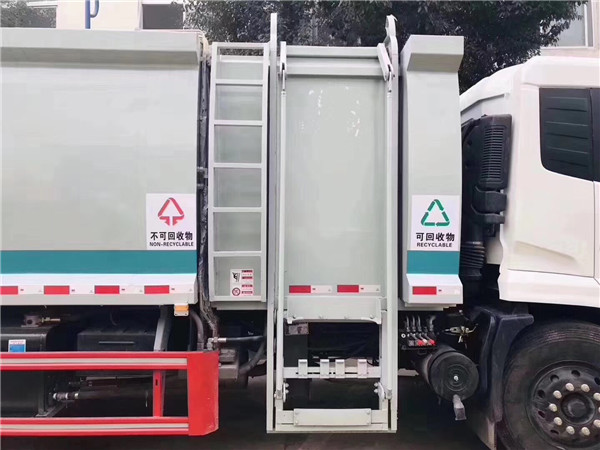 兩款壓縮餐廚垃圾車的卸載方式都是一樣的,都是通過壓縮廂內(nèi)的推盤推出達(dá)到卸載的目的。可將路邊垃圾桶內(nèi)垃圾收集入垃圾廂內(nèi),通過后壓縮裝置將垃圾車壓縮成塊運輸,節(jié)省了垃圾容積,加快了效率,沒有二次污染。