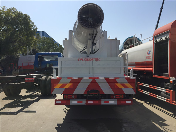 (5)抑塵車駕駛室內裝有顯示器,探頭,駕駛員在駕駛室內操作能看清噴槍左右上下180度噴灑,可以沖洗路邊水溝,沖洗路面,可以不同大小噴灑綠化園林,也可農藥噴灑(噴灑能在駕駛內看的清楚如何操作),本產品可以用多種噴頭達到節能高效,人性化,安全可靠的目的。