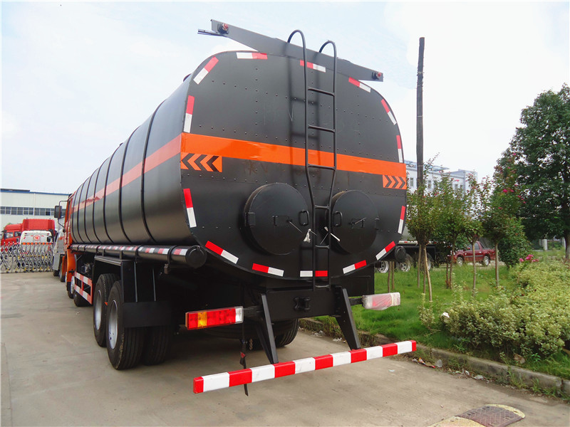 38立方液態瀝青半掛運輸車:采用瀝青泵進泵出,柴油燃燒器加熱系統,保溫系統。