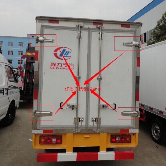 ②可改裝肉鉤冷藏車廂(標配4條加厚鋁合金滑道,不銹鋼固定件,不銹鋼螺絲,不銹鋼固定環(huán),不銹鋼304材質(zhì)雙肉鉤)廂體保溫性好,整體強度大。